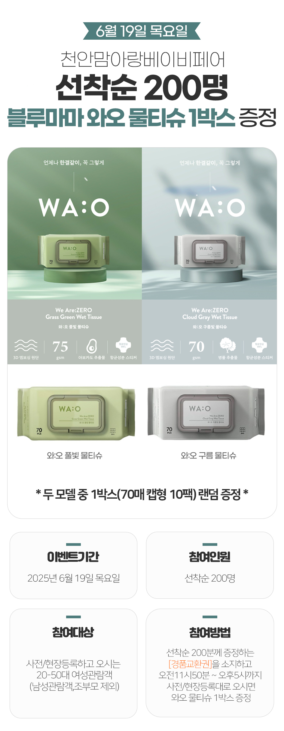 6¿ù19ÀÏ(¸ñ) ¼±Âø¼ø 200¸í ºí·ç¸¶¸¶ ¿Í¿À ¹°Æ¼½´ 1¹Ú½º ÁõÁ¤ À̺¥Æ®